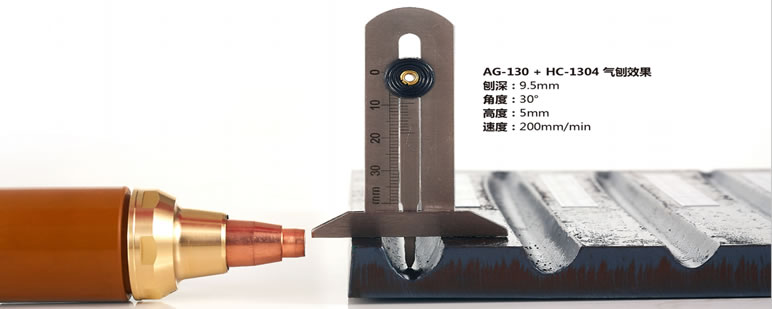 節省成本;氣刨切割,一機兩用,最大引弧高度:12mm,最大無氧化刨深:9.5mm,最大拉弧:50mm,最大刨削速度:800mm/min